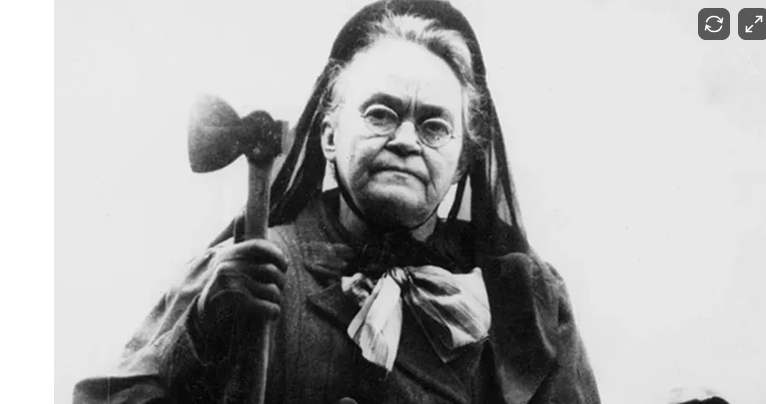 One of the movement’s most famous figures was Carrie Nation, nicknamed “Hatchet Granny” for her so-called “hatchetations”, who became notorious between 1900 and 1910 for smashing up saloons with a tomahawk in the name of moral reform.